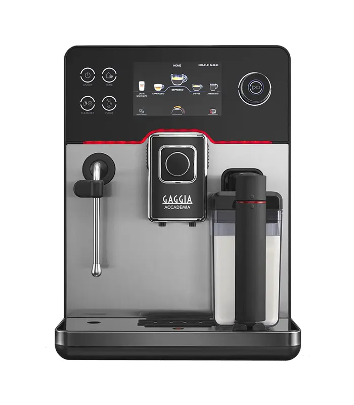 The Gaggia Accademia is a fully automatic luxury Italian espresso machine with painted stainless steel housing and a full color glass touchscreen display and front body panel. With a menu of 19 unique beverages and superlative customization options, your perfect specialty coffee awaits.