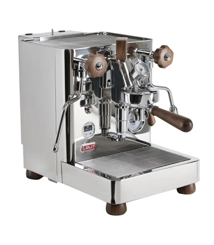 Bianca is an espresso machine without compromises, with L58E group, manual control of the water flow and dual boiler. It has been created for those expert baristas that know how to get the best out of every coffee. Two separate boilers, one for steam and hot water, the other for coffee. A system designed for higher thermal stability and to deliver coffee and steam simultaneously, with a reduced heating time. Paddle, knobs, adjustable feet, handles and filterholders in the finest walnut wood. Appliance body, water tank, drip tray and wire grate in AISI 304 polished stainless steel for a long-lasting result and easy cleaning. The energy-saving system allows to set up a stand-by time after which the steam boiler is disabled and the coffee boiler maintains a temperature of 70°C. The reset time is approximately 10 minutes.