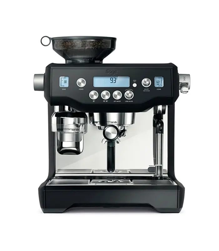 Sage The Oracle™ creates café quality coffee that tastes like you’d get in your favourite café. The Oracle™ has automatic grinding, dosing, tamping and milk texturing, automating the two most difficult parts of manual espresso. You can extract espresso and texture milk simultaneously, enabling you to go from beans to latte in under a minute.