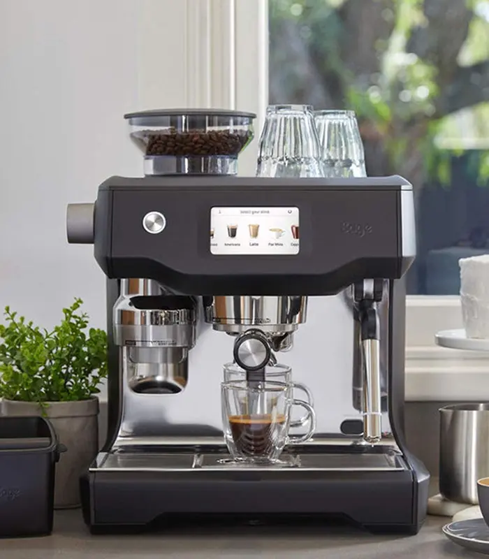 Sage the Oracle™ Touch is an automatic coffee machine with an automated, touch screen operation simplifies how to make your favorite cafe coffee in three easy steps – grind, brew and milk. You can easily adjust the coffee strength, milk texture or temperature to suit your taste. Then save it with your own unique name. Create and save up to 8 personalized coffees.nt maintains thermal stability.