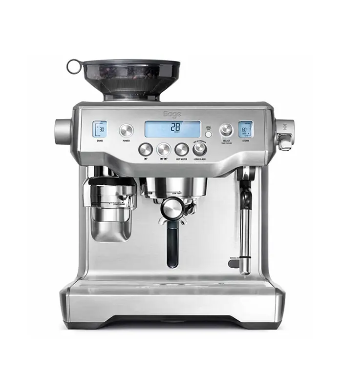 Sage The Oracle™ creates café quality coffee that tastes like you’d get in your favourite café. The Oracle™ has automatic grinding, dosing, tamping and milk texturing, automating the two most difficult parts of manual espresso. You can extract espresso and texture milk simultaneously, enabling you to go from beans to latte in under a minute.
